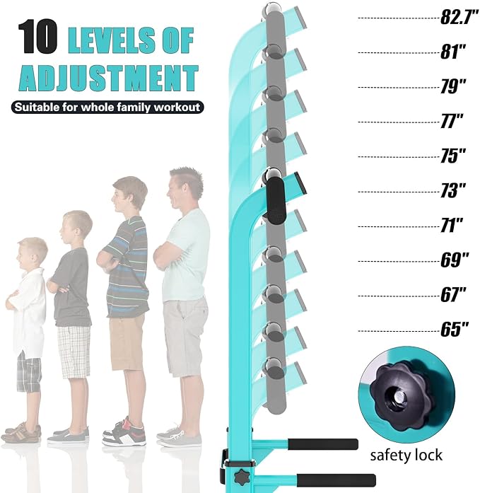 - Height Adjustable Power Tower: Overall size: 32.3Lx29.5Wx65~82.7H(inches). Weight capacity: 330LBS. This pull up station has 5 levels height adjustment, from 65inches to 82.7inches.Multi gear regulation, could adjust the height to meet your need.