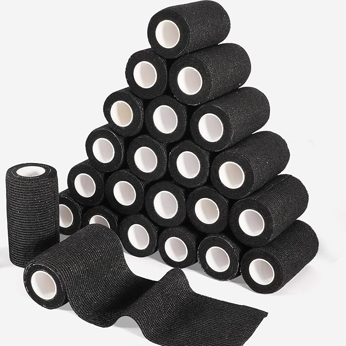 LDIWEE 24 Rolls Self Adhesive Bandage Wrap, 4 Inch x 5 Yards Black Athletic Tape Grip Tape, Flexible Non Woven Cohesive Bandage Wrap