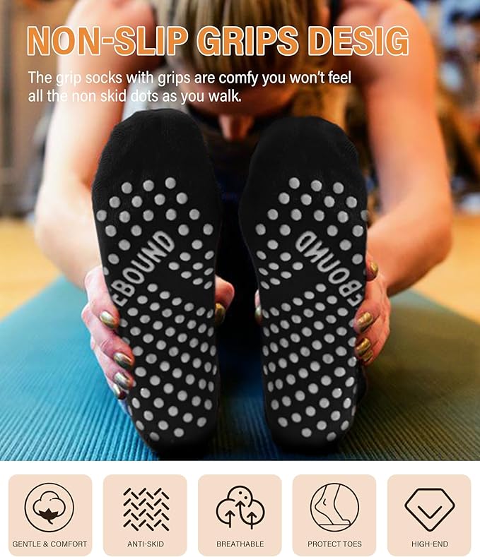 - PREVENT FALLING: Grip socks for women which can keep you safety on the wooden floors wet floors, stairs or yoga mat. Pilates socks with grips for women works good for my elderly parent and which can avoid a potential fall. Hospital socks, sticky socks, white socks, black socks, cotton crew socks for men, boot socks, warm socks for women winter, christmas socks