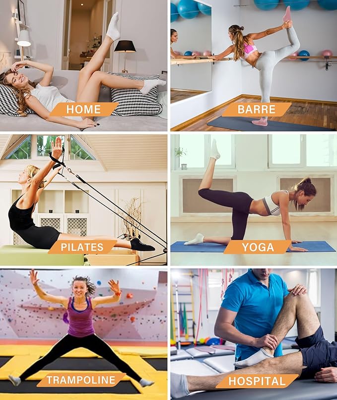 - NON-SLIP GRIPS DESIG: The grip socks with grips are comfy you won’t feel all the non skid dots as you walk. Non skid socks stay on easily are perfect for Yoga, Pilates, Hospital, Barre, Dance, Tower, Bar Classes,Trampoline, Fitness, Taekwondo, Workout, Housework, etc
