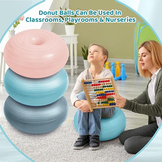 Lewtemi Flexible Seating for Classroom 20 Inch Inflatable Yoga Ball Chair Large Donut Exercise Ball Chair Cushion Seat with Inflator for Kid Student Sensory Balance Home Office