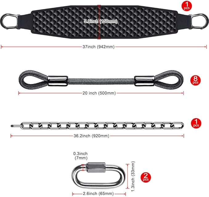 - šļø Enhance Your Strength Training: This set also includes a fitness dip belt with a 36-inch heavy duty chain that can be attached to any weight plate or dumbbell. Use it to add extra resistance and challenge to your squats, lunges, deadlifts, and other exercises. The belt is wide and elastic for comfort and stability, and has a grid design for extra friction and durability.