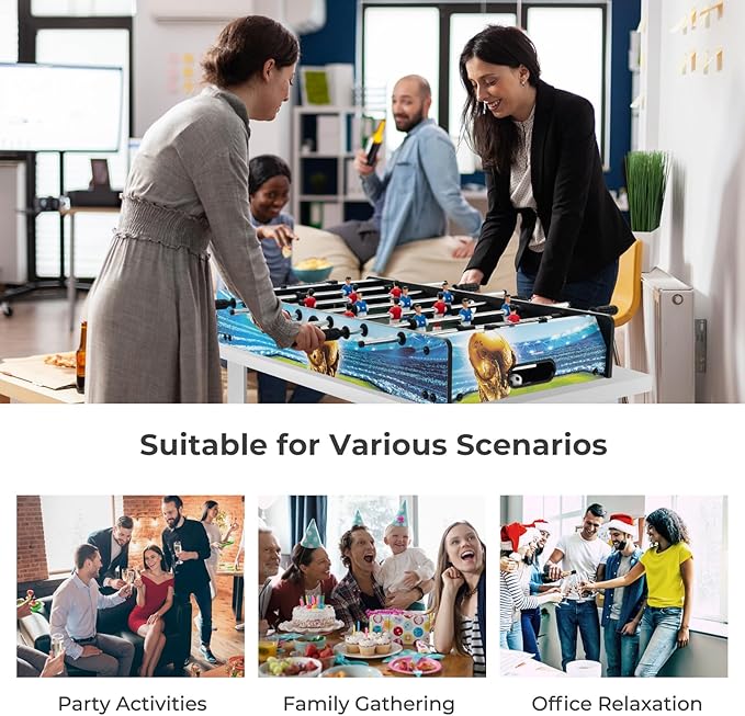 - [Versatile Application]: With its compact size (37" x 20" x 27"), our mini tabletop soccer game is space saving and suitable for small-sized areas. It can be widely used in various occasions such as game nights, family gatherings, picnic activities, or office relaxation.