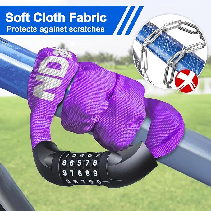 - SCRATCH-PROOF FABRIC PROTECTION: The bicycle chain lock is wrapped by a high quality polypropylene fabric, which is scratch-proof and wear-resistant, anti-hot and anti-icing hands; it protects the chain and prevents it scratching your bicycle frame, long lifespan.