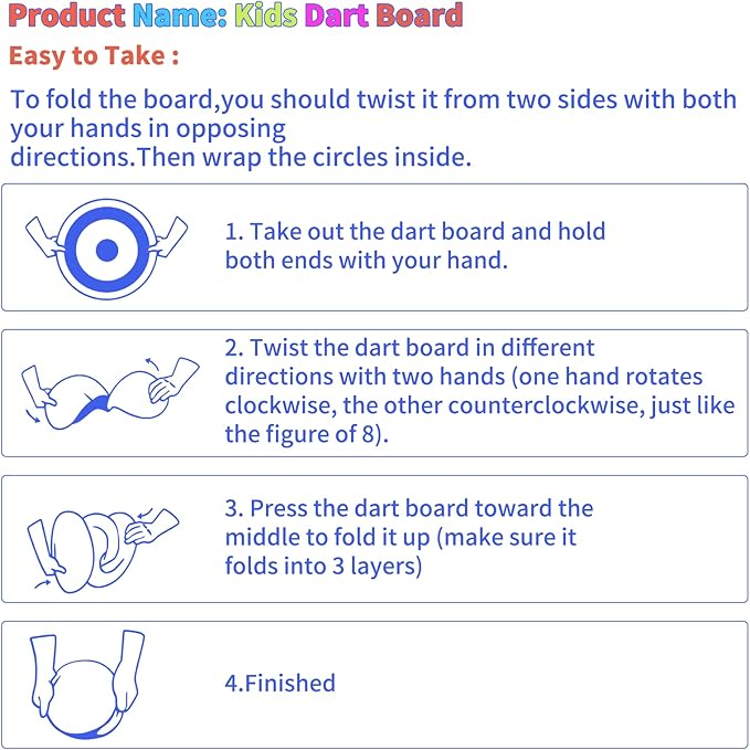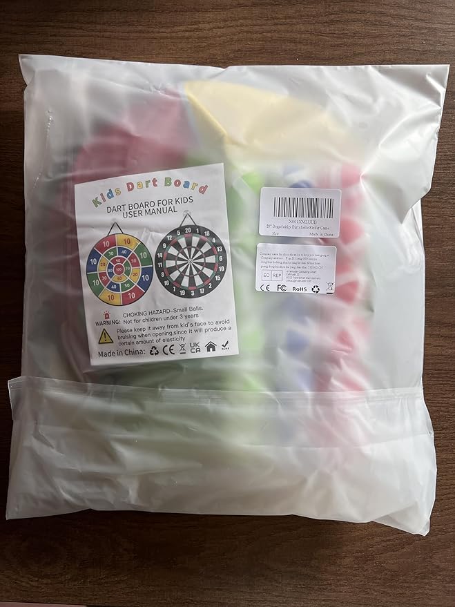 - [Kids Dart Board Set]:Package includes: 1 x Large Toy Dart Board, 18 x Sticky Balls (3 colors), 12 x Darts, 2 x Sticky Hooks, 1 x Bundle storage bag. With these rich accessories, you can enjoy the fun with more players