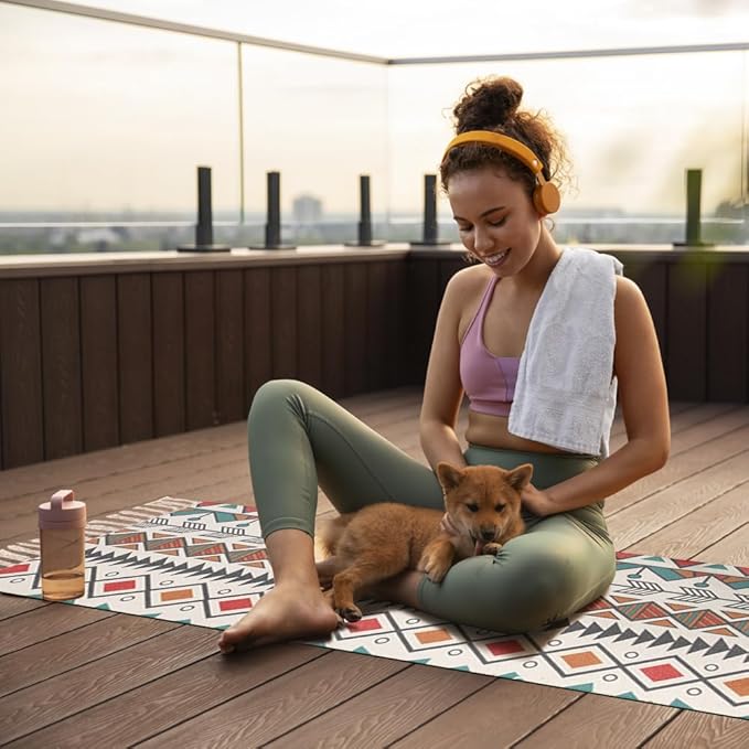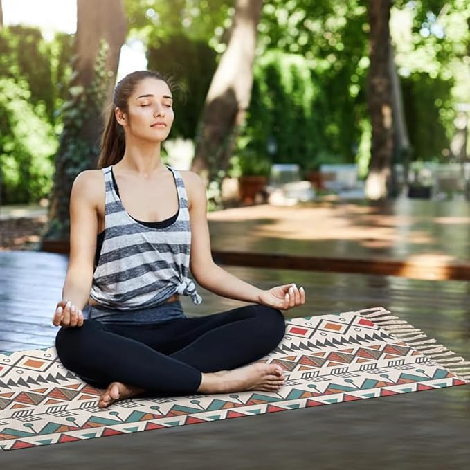 - ▨ PORTABLE WORKOUT & HOT YOGA MAT - Made for both indoor and outdoor use, our mat has fluffy cotton fibers that provide you with a cushioned surface. It’s lightweight, too, making it convenient to carry around. You can easily fold or roll it, then squeeze it into your bag.