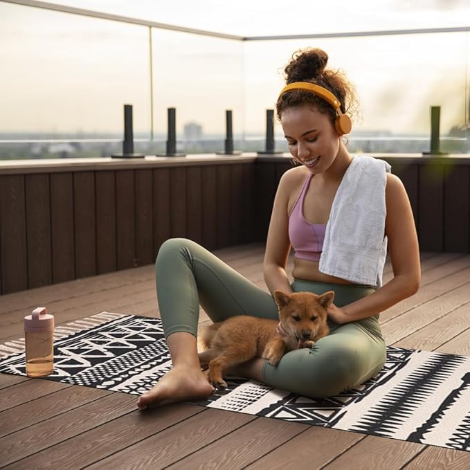 - ▨ PORTABLE WORKOUT & HOT YOGA MAT - Made for both indoor and outdoor use, our mat has fluffy cotton fibers that provide you with a cushioned surface. It’s lightweight, too, making it convenient to carry around. You can easily fold or roll it, then squeeze it into your bag.