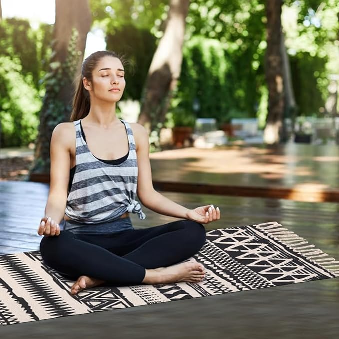 - ▨ BREATHABLE & HYGIENIC MEDITATION RUG - The cotton fabric of our fitness mat has natural cooling properties. It allows your skin to breathe, making it a comfy choice. Plus, it wicks away sweat and moisture. You can easily wash it clean. Enjoy a fresh-smelling mat every time! nuveti's non slip yoga mats are best suitable to practice many forms of Yoga.Pilates and Floor Exercises.