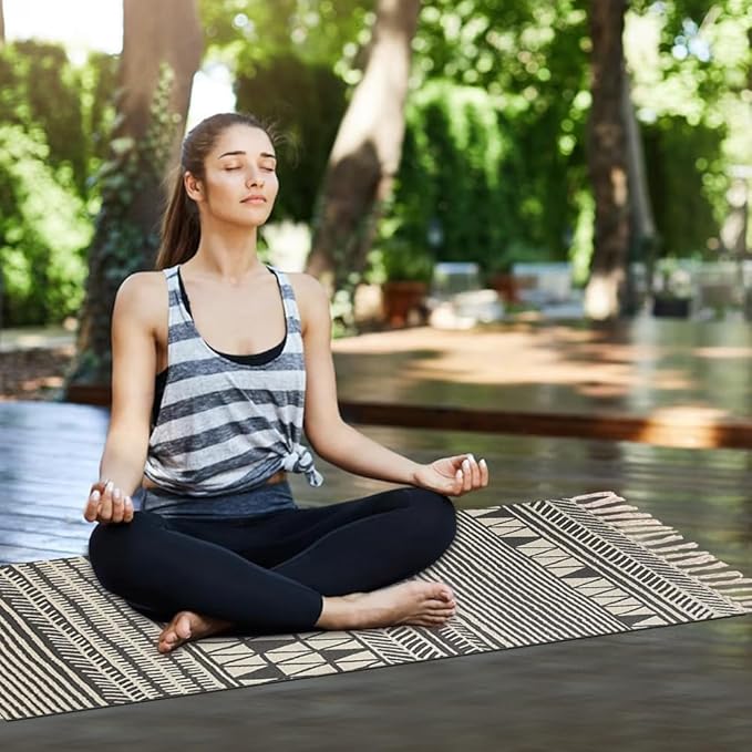 - ▨ BREATHABLE & HYGIENIC MEDITATION RUG - The cotton fabric of our fitness mat has natural cooling properties. It allows your skin to breathe, making it a comfy choice. Plus, it wicks away sweat and moisture. You can easily wash it clean. Enjoy a fresh-smelling mat every time! nuveti's non slip yoga mats are best suitable to practice many forms of Yoga.Pilates and Floor Exercises.