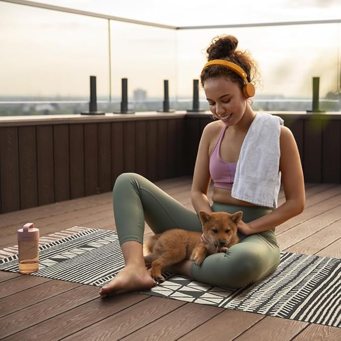 - ▨ PORTABLE WORKOUT & HOT YOGA MAT - Made for both indoor and outdoor use, our mat has fluffy cotton fibers that provide you with a cushioned surface. It’s lightweight, too, making it convenient to carry around. You can easily fold or roll it, then squeeze it into your bag.