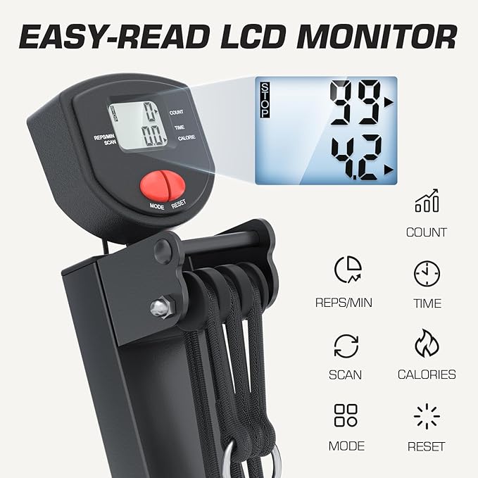 - 【Multifunction Digital Monitor】The LCD monitor tracks your rowing time, counts, REPS/min, and calories in real-time. It's convenient to track your progress toward your goals.