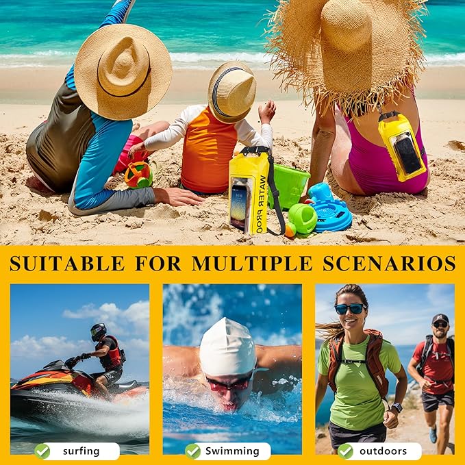 IP68 Waterproof Dry Bag, 2L - Roll Top Waterproof Pool Bag,Dry Bags for Kayaking Waterproof-w/Phone Pouch,Large Waterproof Phone Pouch,Boating & Kayak Accessories Camping (Yellow)