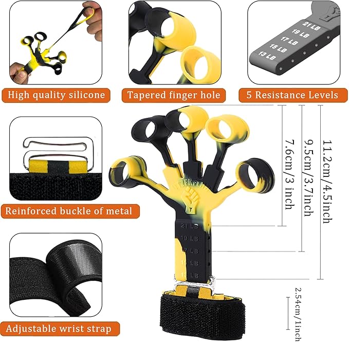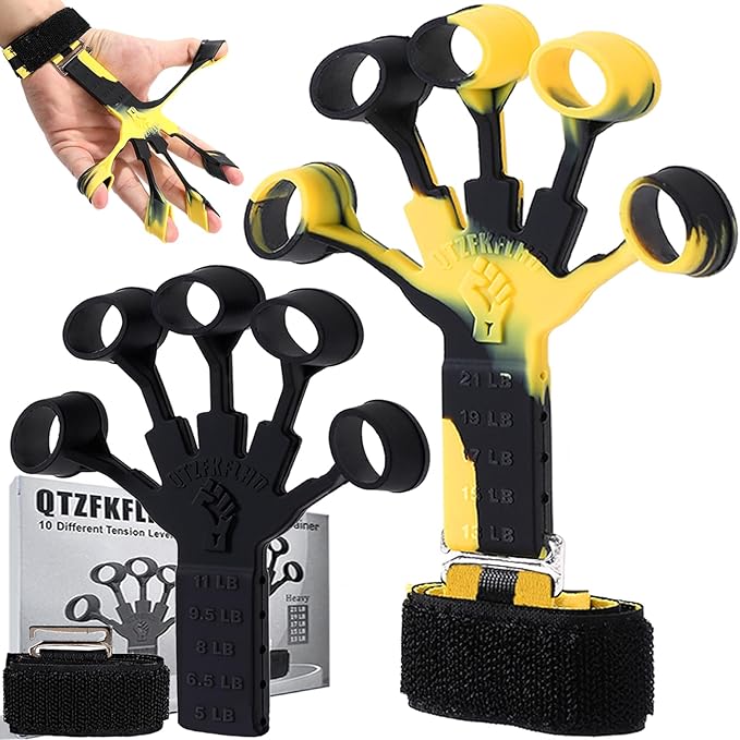 - Multiduty: Grip strength trainer kit is works for improving power and flexibility in the wrists, fingers, and forearms. Gifts for rock climbers, Tennis players, Guitar, Piano, Drummers & Musicians. Grip strength trainer also can used in physical therapy and rehabilitation, for arthritis, stroke rehab, carpal tunnel, tenosynovitis, fractured, tendon surgery and tennis elbow, reduce stiffness and pain.