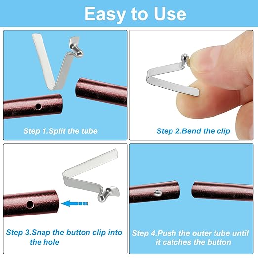 - Instruction: Bend the clip, put the clip into the rod, snap the button clip into the hole, and push the outer tube until it catches the button.