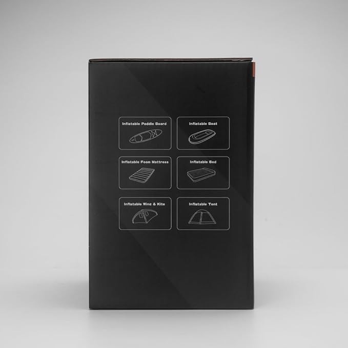 - 【ACCURATE DIGITAL DISPLAY & LIGHTNING】Featuring a digital LED screen, the paddle board inflator pump will show setting pressure and monitor the pressure in real-time. Equipped with a differential barometer, it maintains a reading error within ±0.2 PSI, making it far more reliable than its peers (±1 PSI). Its lighting function makes it incredibly convenient for dark area use.