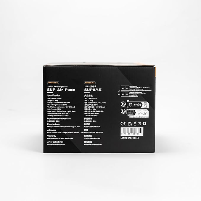 - 【SUPERIOR MATERIALS & DURABILITY】The electric air pump for paddle board is made of premium materials, including PTFE+PI (Teflon+Polyurethane) for the piston bowl, providing a longer pump life compared to competitors' fluororubber. The pump's plastic parts are made of nylon+fiberglass, which can withstand temperatures up to 200°C. The upgraded air intake valve is made of 304 stainless steel for added durability.