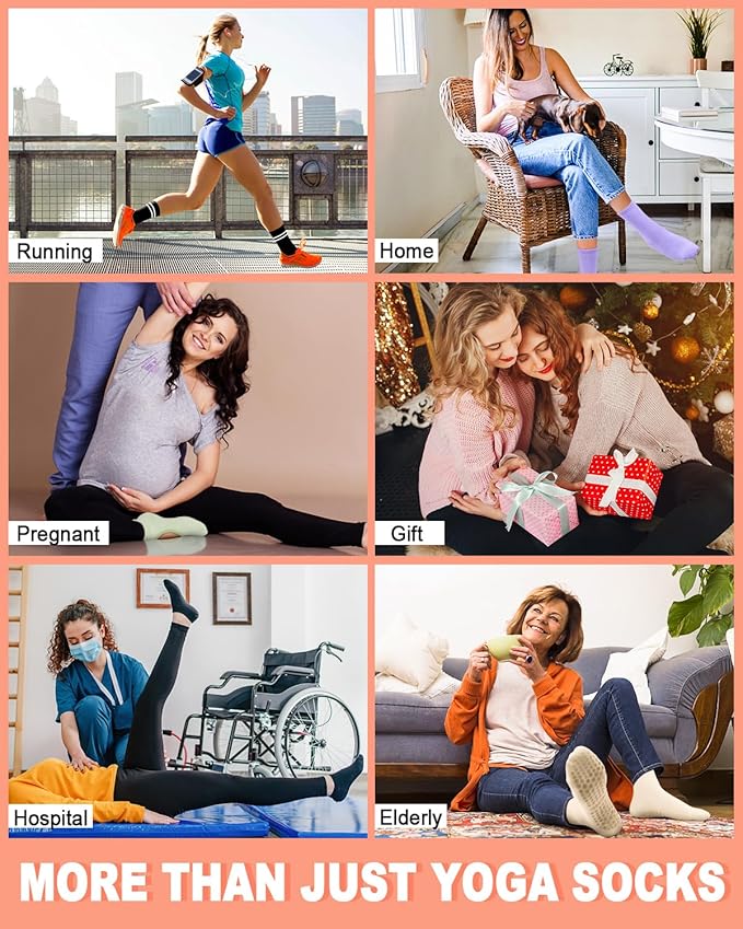 - 🆕ENHANCE YOUR EXPERIENCE -- Aoliks Women pilates socks are an ideal companion for a wide range of activities including yoga, pilates, bikram, barre, ballet, trampoline, studio workouts, gym sessions, and dance practices. Not only that, they serve as excellent hospital socks, floor socks for daily use, and are especially beneficial for activities like physiotherapy, elderly care, and during pregnancy, effectively helping to reduce the risk of falls on stairs or slippery floors.