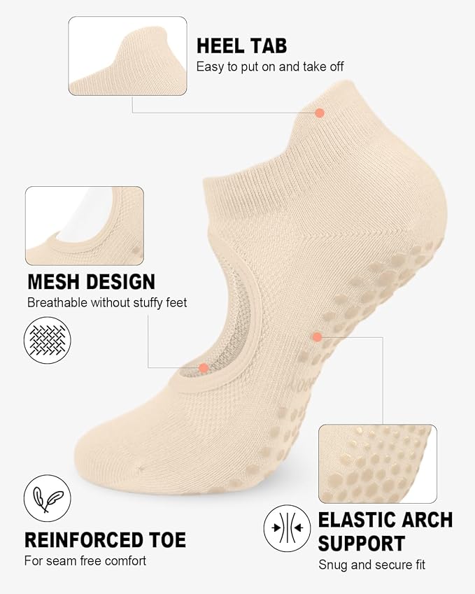 - 🆕ALL-DAY COMFORT -- The soft yet durable fabric hugs your feet gently. Our yoga pilates socks are engineered with breathable cotton materials that promote airflow, keeping your feet dry and comfortable even during the most challenging exercises.
