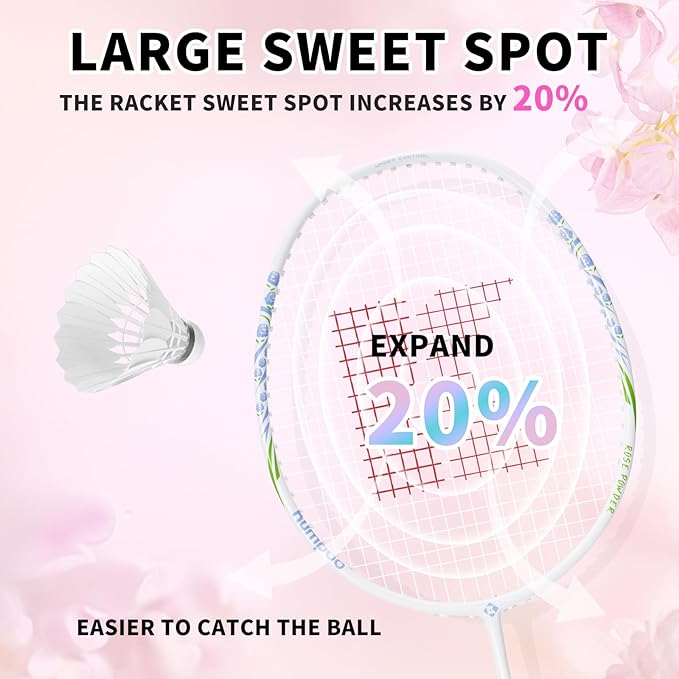- 🏸Perfect Design Details: The racquet features a one-piece exterior and a built-in T-joint on the interior, ensuring sturdy construction and more stability during gameplay. The enlarged and widened racket surface has a larger sweet spot, enhancing hitting efficiency. The 330° surrounding wire trough design effectively prevents wire breakage caused by impact or wear.