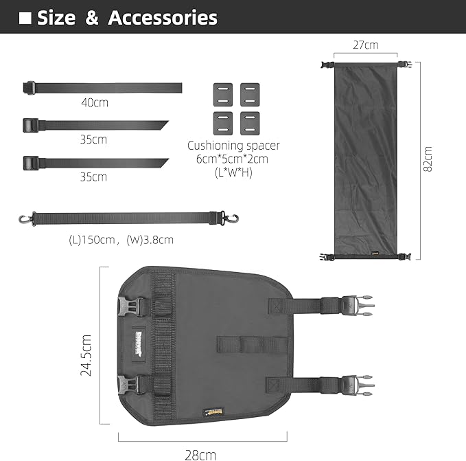 - Through the combination and split design, the front fixed base and waterproof bag are turned into separate entities. Not only can you carry your own inner bag, but you can also fix other items such as tents, sleeping bags, moisture-proof pads, clothing, etc.