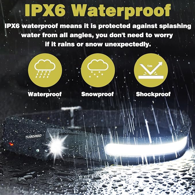 - Special Feature : Rechargeable, Adjustable Headband, IP65 Waterproof, Lightweight, 6 Lighting Modes, Motion Sensor