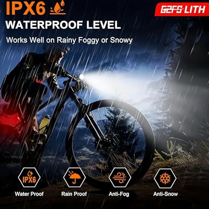 - 【ALL ABOUT SAFETY】ALL ABOUT SAFETY: Weather resistant and durable - Rated at IPX6 Water Resistant, These lights have been built to high quality material for all weather conditions. Has undergone strict anti drop and vibration testing impact resistant and built to perform.Bike headlight and taillight have ultra high visiblity to enhance the safety of your ride.