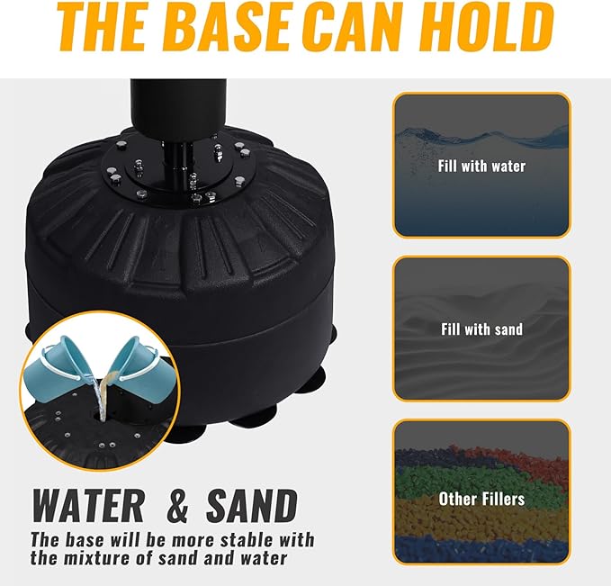 - Large & Stable Barrel Base: The 19''/50cm diameter barrel base is stable and can be filled with water or sand. Equipped with 12 suction cups to prevent floor scratching and minimize shaking on any smooth surface like tiles, wooden boards, or concrete floors.