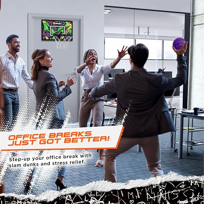 - MAXIMUM DURABILITY AND DOOR PROTECTION: Safeguard your door while indulging in mini basketball games with the AND1 Mini Hoop. The professional-grade shatterproof backboard ensures durability, and the foam-padded backing protects your door, making it a top choice for an indoor basketball hoop.