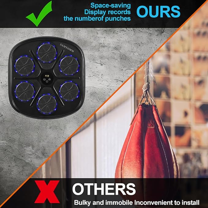 - 【Bluetooth Connection】the music boxing machine provides a variety of workout options, combining music rhythm and scoring modes to spark exercise interest. The phone connectivity feature allows users to effortlessly play their favorite music, adding a fun element to their workout.The maximum sound is 85 decibels or less.If you encounter any issues with this product, please notify us immediately, and we guarantee a quick response and resolution within 24 hours