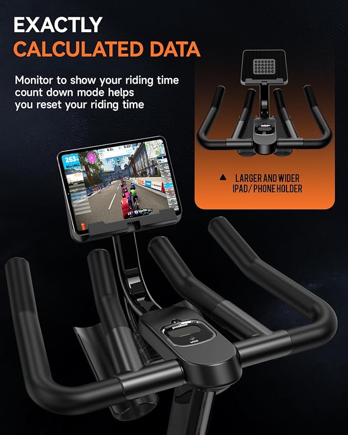 - 1【Access to Multiple Fitness Apps】 Advanced bluetooth technology allows connecting to multiple free Apps, so that you could monitor or keep records on your own phone. Tablet/Phone Holder also provides the freedom of using your smart devices to watch shows while riding.