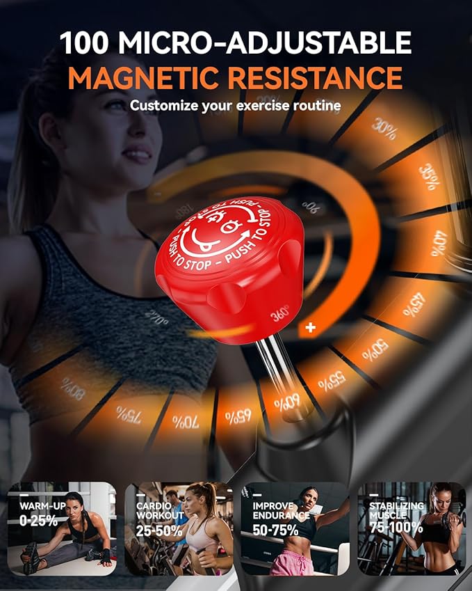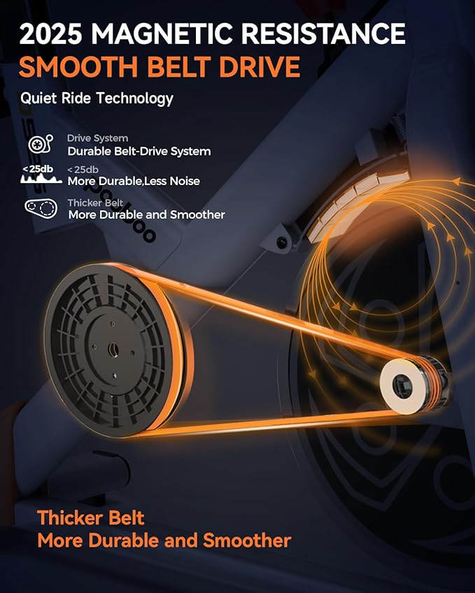 - 3 【Silent Magnetic Resistance System】 Magnetic resistance is quieter than strap resistance because the magnets never touch the flywheel. Along with a quiet and smooth ride, you can expect little to no maintenance.