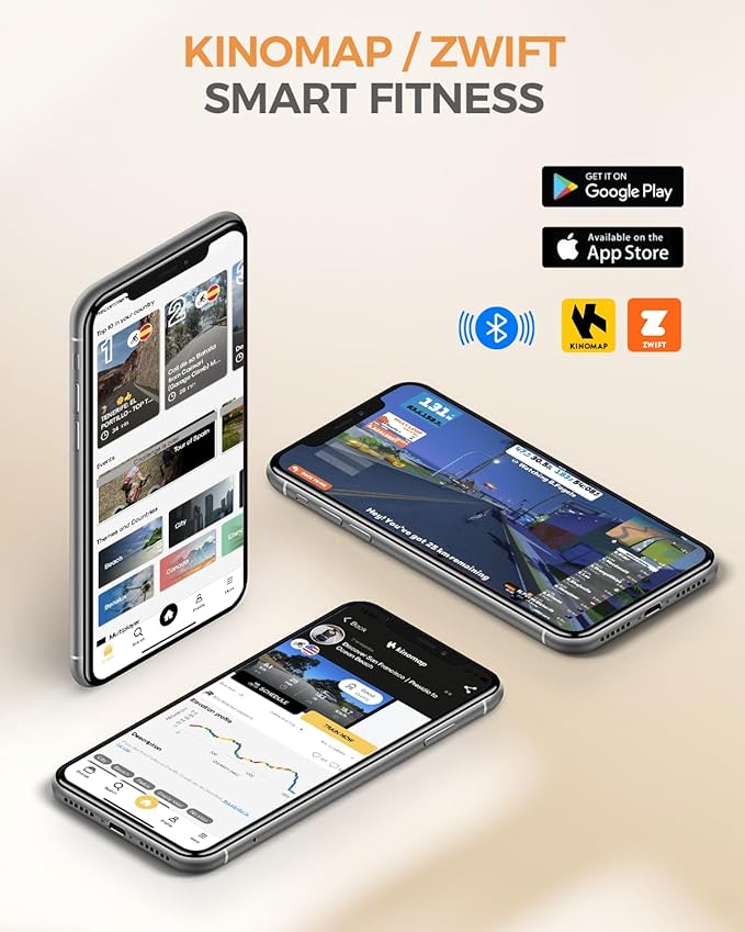 - 【Connection to Fitness APP】Built-In Sensor, compatible with KINOMAP, Z APP. With KINOMAP/Z Smart Fitness APP, you can record and view training data and share fitness data on social media. Make your exercise more fun.