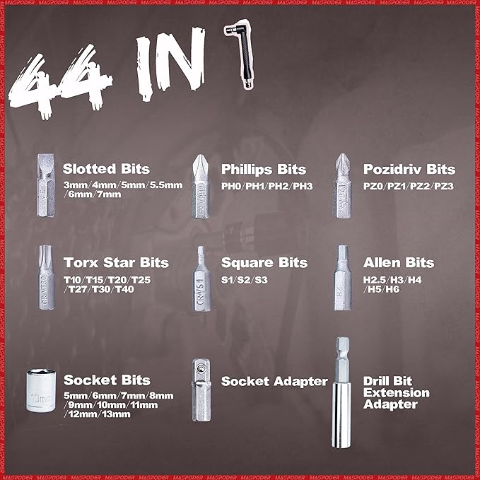 - Farewell to Bulky Toolboxes! The wrench in this driver bits set is crafted from high-strength carbon steel, and the drill bits are forged from chromium-vanadium steel. The 44-in-1 mini bike multitool packs various bits. The screwdriver measures 4.33 inches, compact enough to slip into your bike bag effortlessly. Having this on your bike journey is like having a portable toolbox, ready for more unexpected situations. It lets you enjoy your ride with ease!