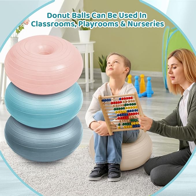 - What You Receive: you can get 8 pcs flexible seating designed with donut shape and 8 colors,light apricot, light blue, light pink, light yellow, gray-blue, smoke gray, gray-green, light gray, each about. 20 x 20 x 8.8 inches, 1 pcs inflator, inflatable can provide kids with even a correct sitting experience, can provide effective cushioning for children and protect their hips