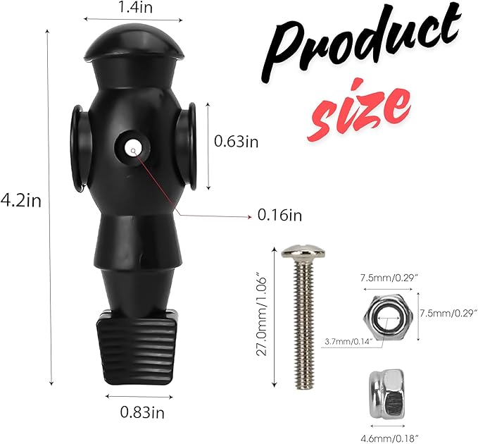 - Package & Size: The set includes 26 players (13 black and 13 white), each sized: 107mm tall; hole diameter: 16mm. They fit most foosball tables, but be sure to check the size before buying!
