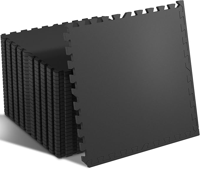 SUPERJARE 0.4'' Thick 24 Pcs 96 Sq Ft Rubber Top Exercise Equipment Mats, High Density EVA Foam Mats with Rubber Top, Interlocking Gym Flooring for Home Gym, Protective Workout Mat, Black
