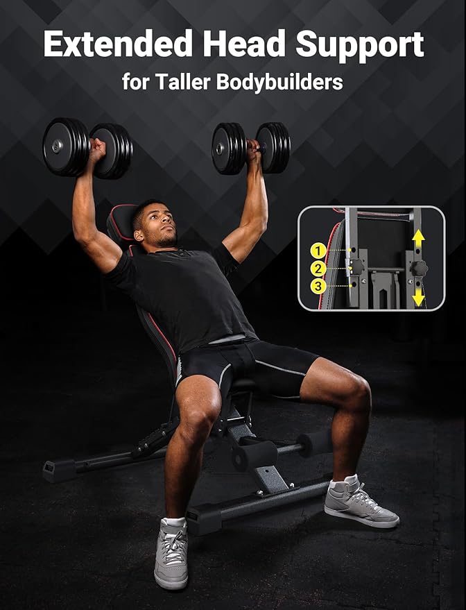 - 【Extended Head】It comes with a detachable headrest that provides full head support for taller bodybuilders.