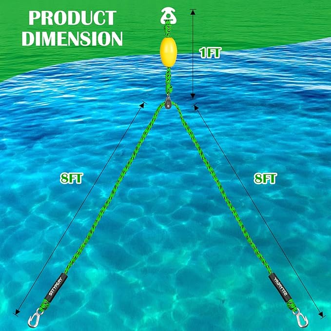 - FLOATING CAPABILITY: SETYPARY Y tow rope for tubing features the big buoy float and 2 sections of foam flotation to ensure it floats on the water, making retrieval easy and minimizing the risk of tangling. Its high visibility also keeps it away from the boat's propeller.