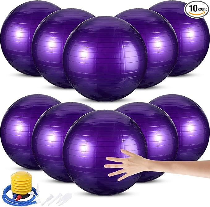 - Nice Combination: you will receive 10 pieces of purple exercise balls, with 10 sets of pins, air plugs, valve remover tools and 1 piece of pump, sufficient quantity to use, exchange and share with others, practical for gym, home, school and office exercise