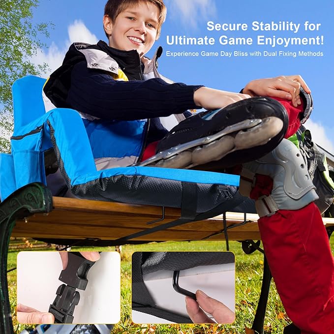 - 【When & Where Stadium Seats with Back Support Are Essential】-- Whether you're watching football, baseball, basketball, or any other sporting event, sitting in a comfy bleacher chair will enhance your enjoyment. Our stadium seats are the ideal choice to meet all your needs, whether you're camping, attending outdoor concerts, sporting events, relaxing on the beach, or lounging at home. Say goodbye to discomfort from hard seats and enjoy optimal comfort. Thoughtful Gifts for Relatives and Friends.