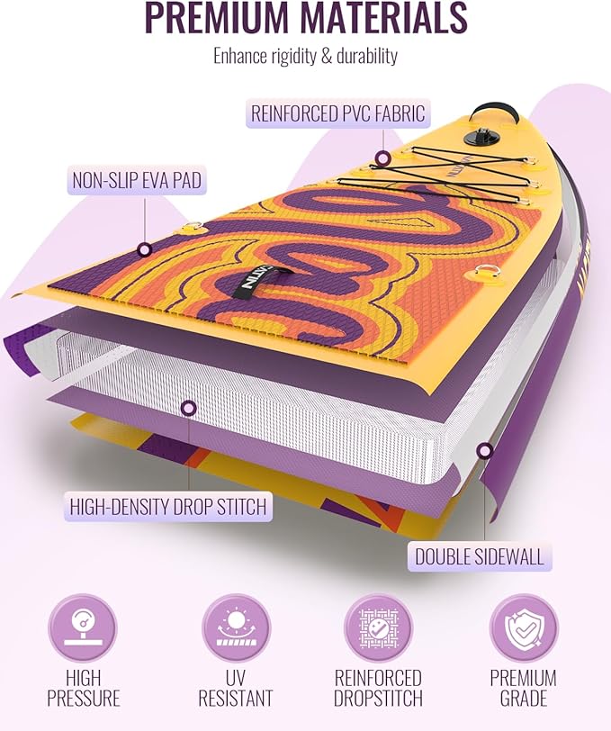 - DURABLITY FOR LONG-LASTING PERFORMANCE: Constructed from premium drop stitch and lightweight military-grade PVC, our board guarantees a sturdy and resilient riding experience. Its reinforced PVC body ensures resistance to deformation over time, promising years of reliable performance.