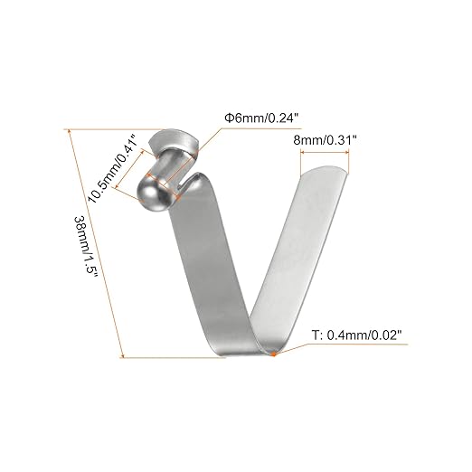 - Size - The size of these kayak paddle spring snap clips is 0.4mm/0.02" Shrapnel Thickness; 38mm/1.5" Shrapnel Length; 8mm/0.31" Shrapnel Width; 6mm/0.24" Button Diameter; 10.5mm/0.41" Button Length