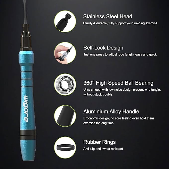 - WORK OUT YOUR WAY: No matter what your workout style is, adding jumps to your Wigore gets your heart pumping like nothing else. Our rope is made for people who are serious about training but want the versatility and quality of a superior speed rope. Like all our fitness equipment, our speed jump rope is ideal for CrossFit, double unders, boxing, fitness, conditioning, and more, at home, in the gym, or wherever you like to travel to