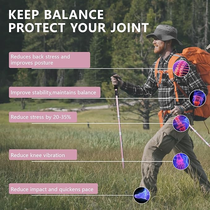 - 【Hiking Poles For Joint Protection】 Provides suitable height options, through the use of hiking poles, can effectively reduce the pressure on the joints of the whole body, so that you can enjoy the fun of hiking and mountaineering.