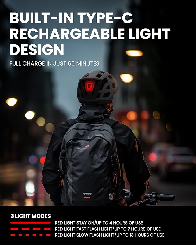- Rechargeable Helmet Light: The Mips bike helmet included plug-in USB rechargeable LED light, 3 Lighting Modes-steady, fast flashing and slow flashing, will help riders behind you clearly recognized your direction. The bicycle helmet light only takes 60 minutes to charge and can be used for 13 hours