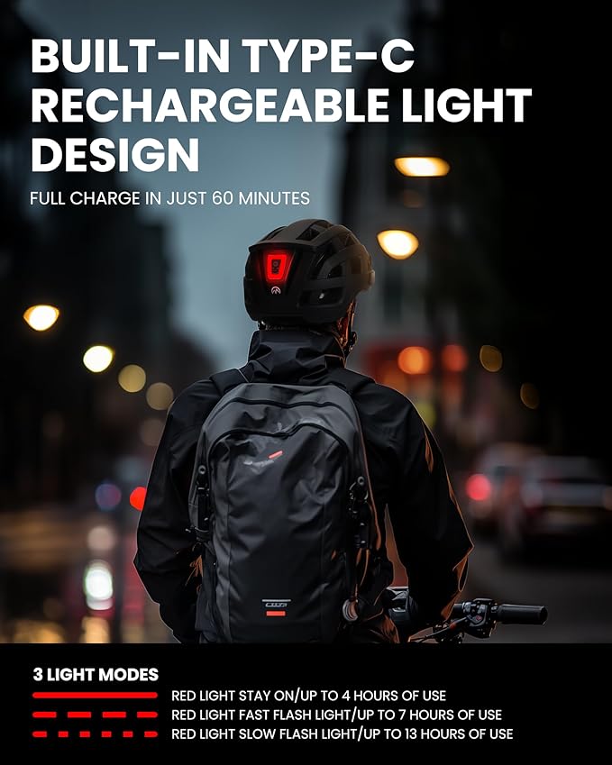 - Rechargeable Helmet Light: The Mips bike helmet included plug-in USB rechargeable LED light, 3 Lighting Modes-steady, fast flashing and slow flashing, will help riders behind you clearly recognized your direction. The bicycle helmet light only takes 60 minutes to charge and can be used for 13 hours