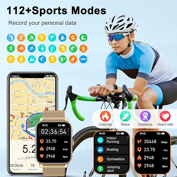 - Fitness watches for women men & 112 Sport Mode - Running watches accurate track step,distance,calorie.Digital watch men women support 112 sport mode:running,riding,badminton,hiking etc to give you more detailed insight into whole day activity.Step tracker watch for women men is IP68 waterproof,you can wear it during outdoor activities, rainy day, washing hand.Note: This waterproof watch can obtain GPS positioning through your mobile phone and clearly upload your movement path