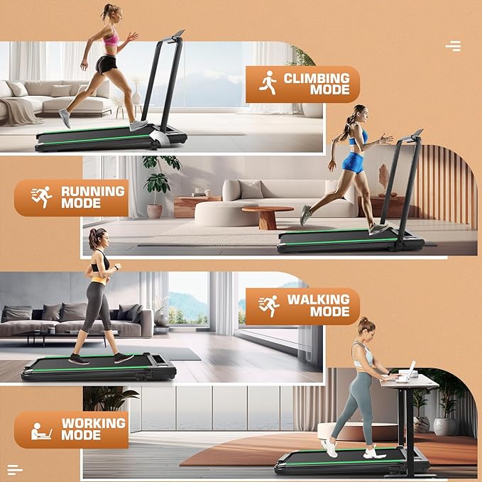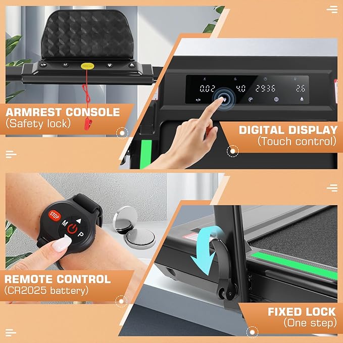 - 【2s Folding Treadmills for Home】No assembly is required, the treadmill can be used directly after unboxing. The one-step folding system allows the treadmill to be folded in just 2s. This walking mat is only 4.5 inches thick, allowing you to hide it under your couch or bed. The front transport wheels make it easy to move anywhere, perfect for homes, apartments, and offices