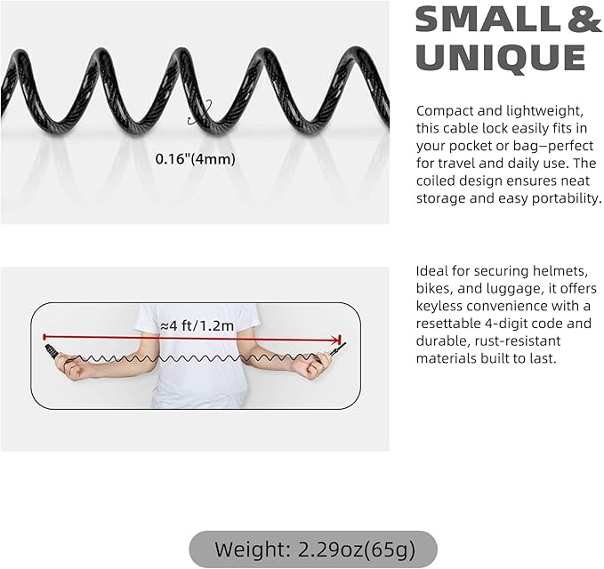 - Versatile Retractable Cable Lock: Designed for optimal security, the UP Security cable lock features a retractable spring wire that easily adjusts to the length you need, providing versatility and convenience.