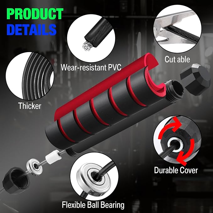 - Strong and reliable: our jump rope is made from steel wires coated with durable PVC material; This ensures it maintains its integrity, even with long term, rigorous use; It also features quality ball bearings that prevent twisting, winding, or bending typical of other fitness ropes, resulting in a smooth, effortless spin that allows for comfortable workouts